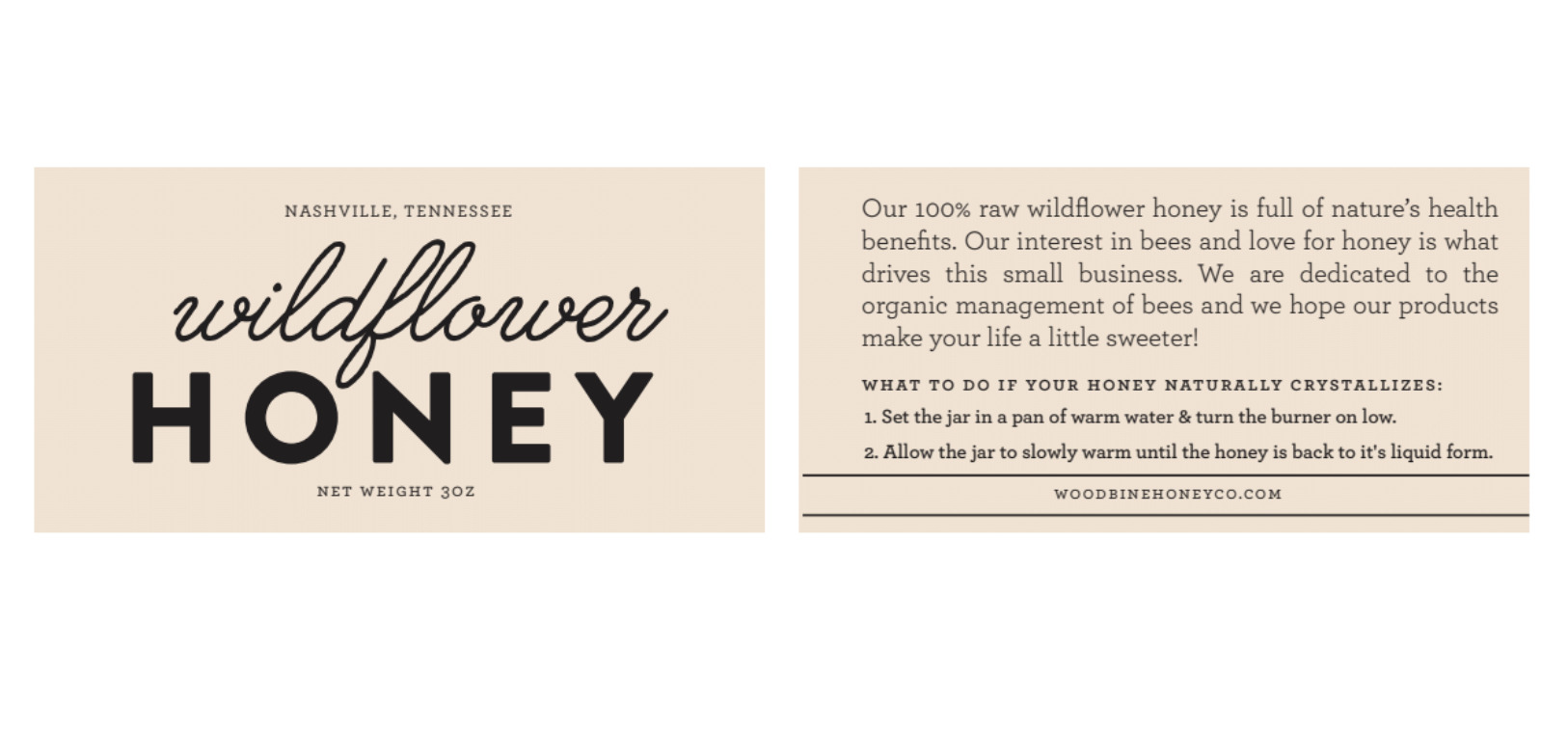 Woodbine Honey Co. began when I won 15,000 honeybees in a raffle! My friends, Adam & Jamie Gatchel, just so happened to also win a hive. Thus our backyard beekeeping adventures began. Woodbine Honey Co. was a small urban beekeeping company in Nashville, TN. WHC specialized in natural wildflower honey to make your life a little sweeter. No hobby for a designer is complete without a logo and real product for sale!